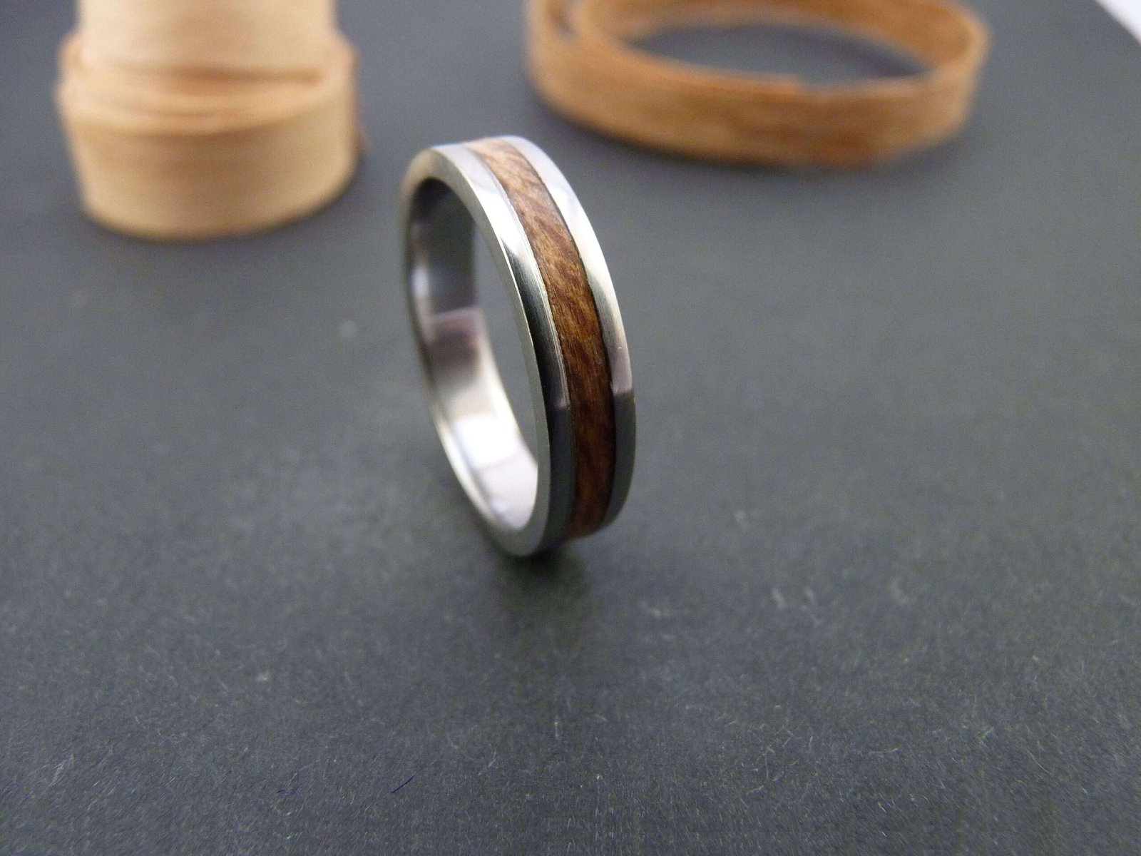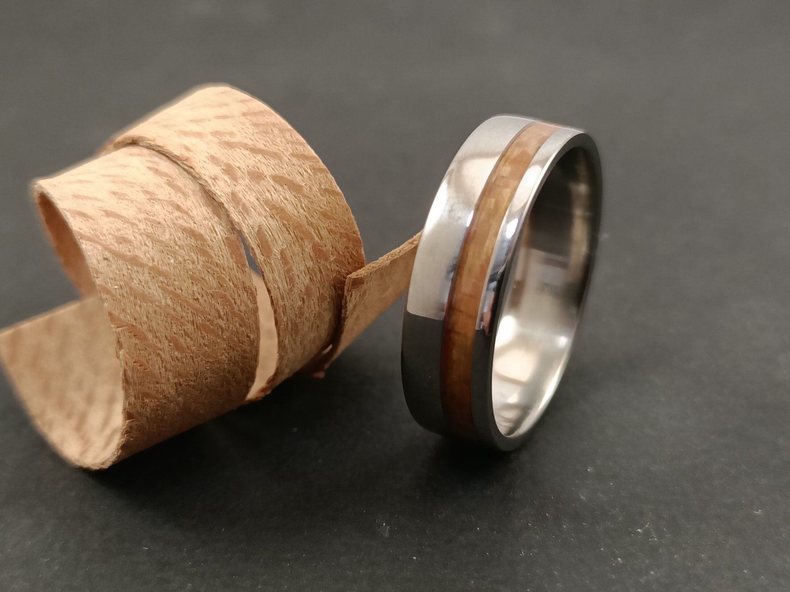 Bague en titane et platane pour homme ou femme