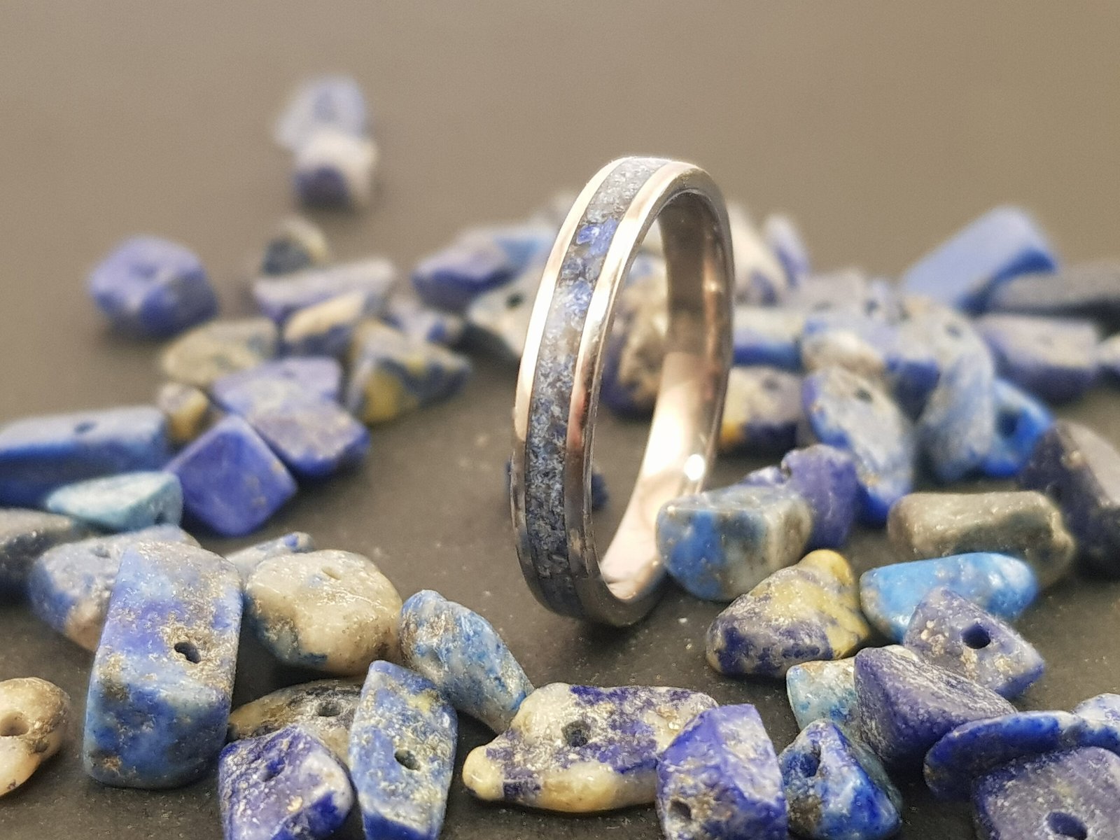 Bague titane et lapis-lazuli – L 7mm – L 4mm