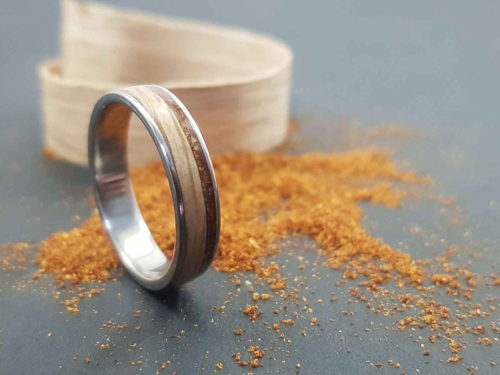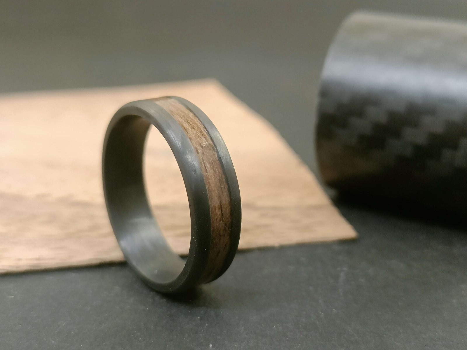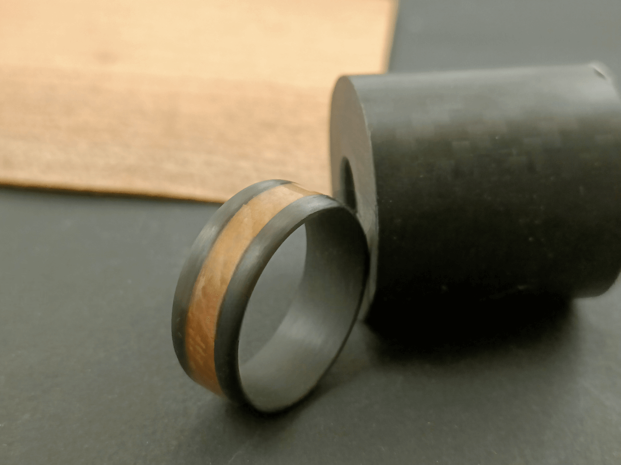 Bague en fibre de carbone sertie d’une essence de bois