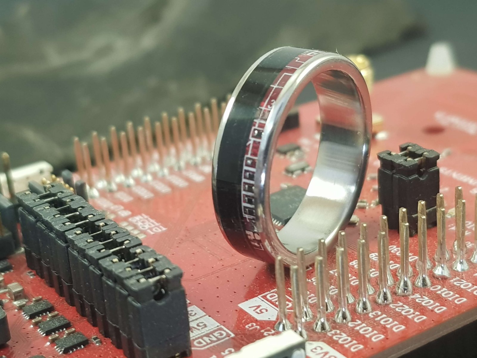 Bague en titane avec incrustation de noyer et circuit imprimé vert