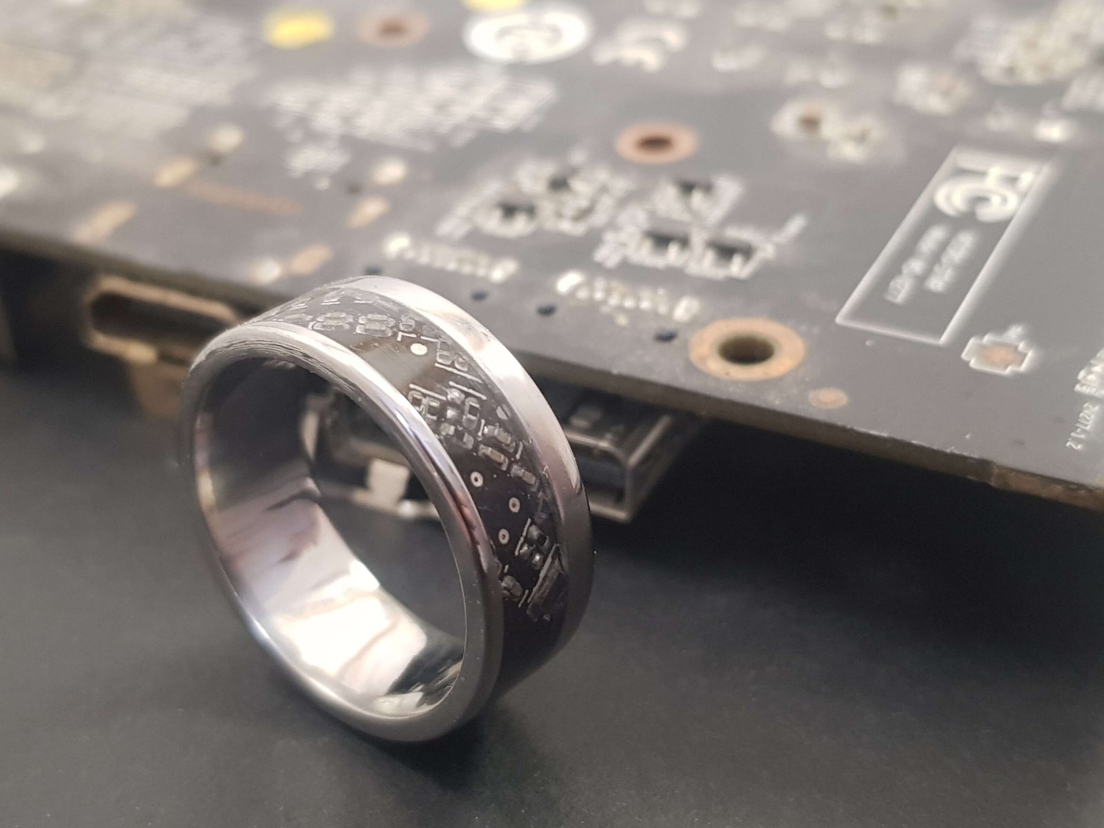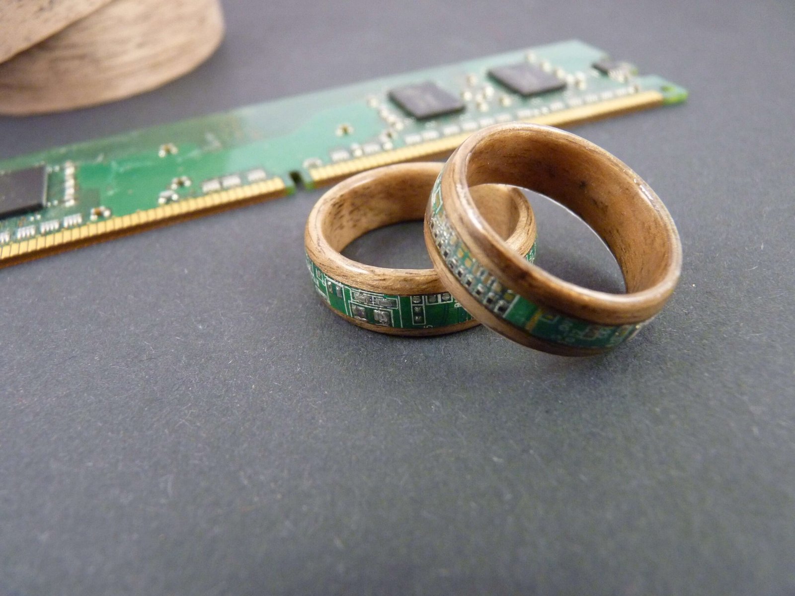 Bague en noyer et circuits imprimés issus de recyclage pour homme et femme