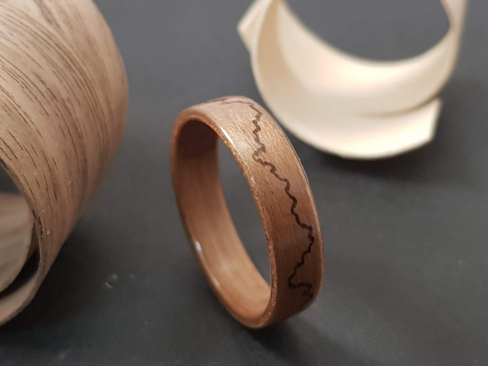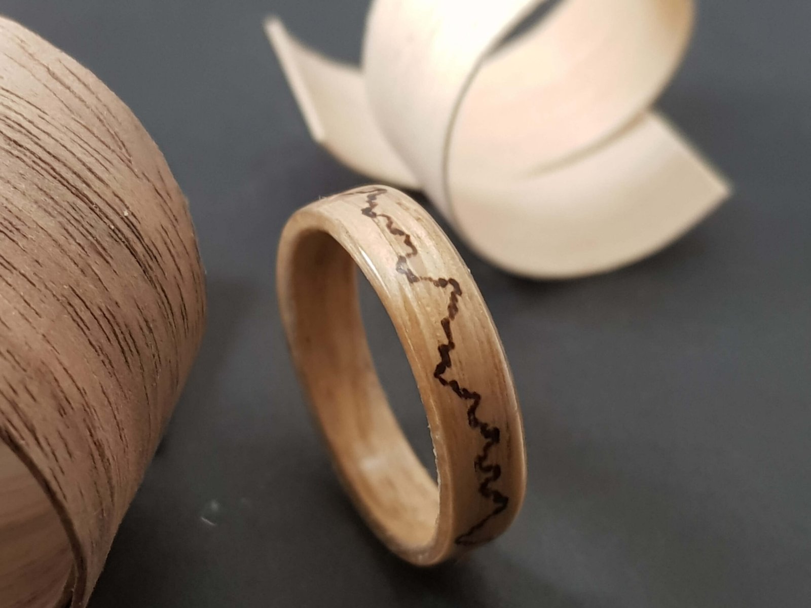 Bague en bois et pyrogravure
